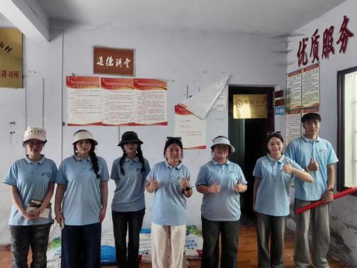 7月5日 - 8日,推普融入鄉(xiāng)土與紅色基因:帶領(lǐng)村民探尋山泉水源頭,講述歷史故事,為積極學習者送上心意禮品;借抖音直播、入戶教學,科普普通話在務(wù)工、電商中的價值,小禮物點燃學習熱情;結(jié)合紅色節(jié)點,教唱《沒有共產(chǎn)黨就沒有新中國》,邀退役村民獻唱軍歌,優(yōu)秀學員頒獎、與老黨員合影,讓普通話學習與紅色傳承、鄉(xiāng)土記憶同頻共振。隊員們還下田幫農(nóng),在汗水中拉近與村民距離,讓推普更貼“泥土氣”。