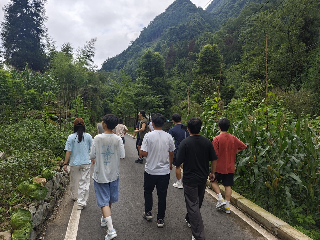 圖為實踐團成員在鄉村山野間道路開展實地調研。李方攝
