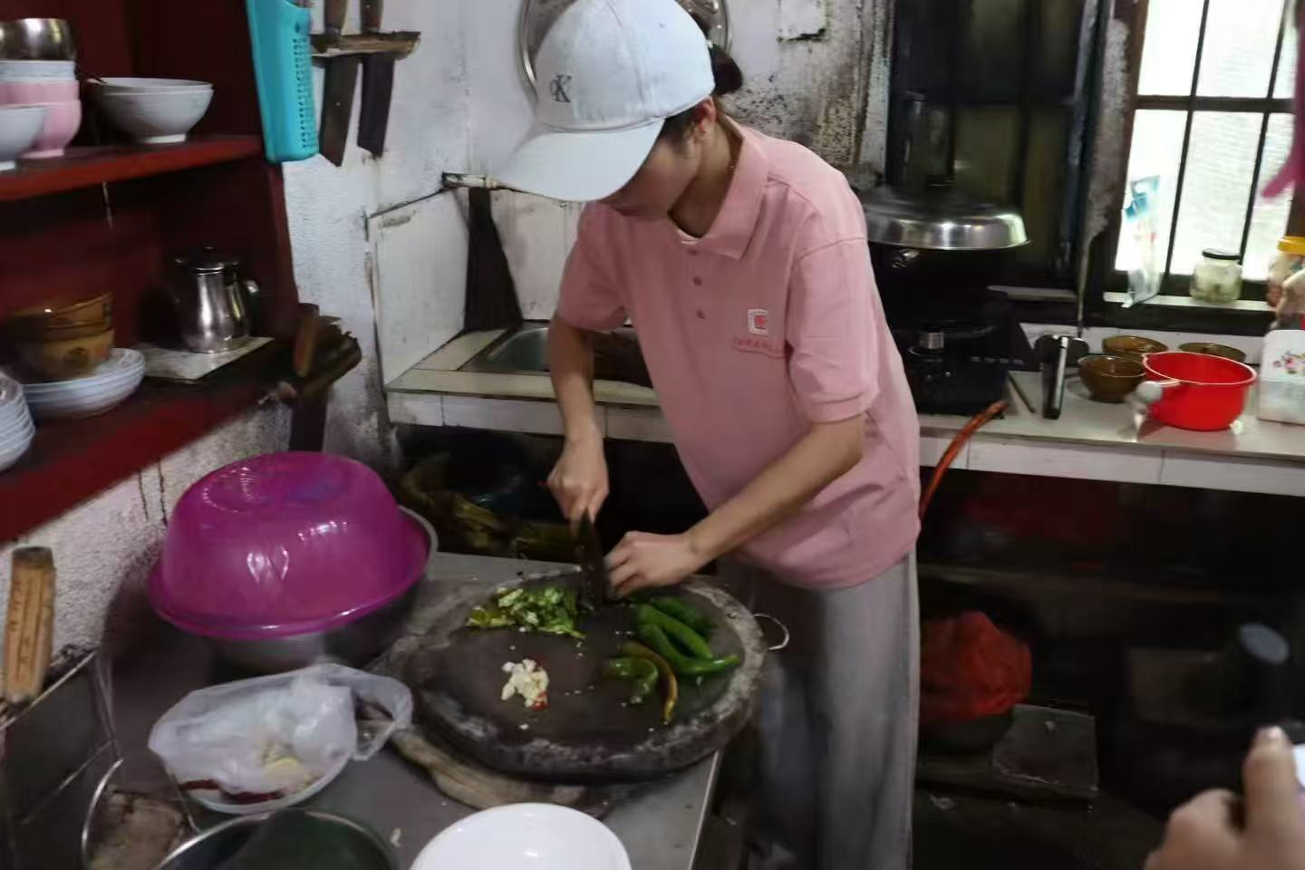 “紅米飯那個南瓜湯喲咳羅咳”。中午,團(tuán)隊成員走進(jìn)以“紅色”“綠色”“古色”為發(fā)展理念的茅坪鎮(zhèn)馬源村,在老鄉(xiāng)帶領(lǐng)下生爐火、掌大勺,親手制作紅軍餐。劈柴生火的忙碌、翻炒菜肴的細(xì)致,讓大家直觀體驗到井岡山革命時期的艱苦生活,體會到紅軍戰(zhàn)士在困境中堅守的革命信仰與樂觀精神。