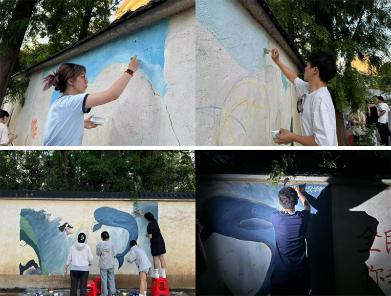 近日,武漢學院“長江生態畫廊計劃”志愿服務隊前往黃岡市黃州區西湖街道新港路社區開展了一場為期八天的公益墻繪活動。用畫筆為社區添彩,成功完成十幅生態主題墻繪,讓藝術與公益在長江之畔綻放光彩。