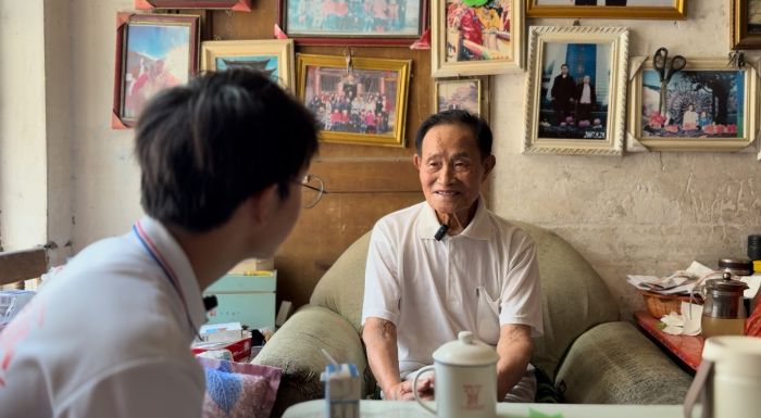 圖為青島大學(xué)外語(yǔ)學(xué)院“湘西莓茶香,青春助農(nóng)興”社會(huì)實(shí)踐團(tuán)成員采訪、探望長(zhǎng)壽老人