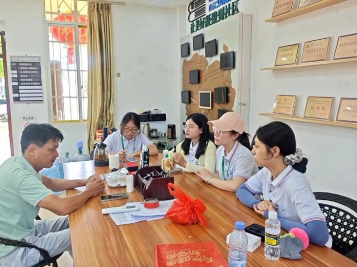 圖為實踐隊在村委會采訪才存村書記。旁雅勻 供圖