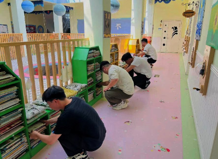 在每天課后時間,實踐團成員來到幼兒園圖書角。他們仔細分類、有序擺放圖書,擦拭書架,讓閱讀空間整潔有序。過程中,實踐團成員耐心整理,優(yōu)化幼兒園閱讀環(huán)境,用行動助力小朋友愛上閱讀。