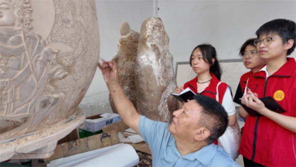 圖為鐘福洪先生為實踐隊成員展示陶瓷雕刻技藝。程鈞豪 供圖
