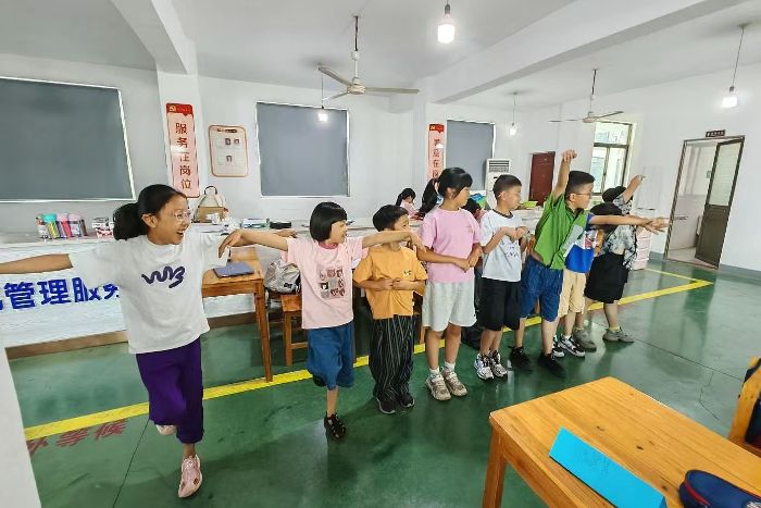 從孩子們圍在“腐草為螢”圖片前,熱烈討論螢火蟲來歷的猜想,到分組交流“曬伏姜”時,踴躍分享家中解暑妙招的場景,課堂成為古今對話的鮮活場域。這些互動里,孩子們把“土潤溽暑”的物候、“大雨時行”的規律,化作可感的生活認知。