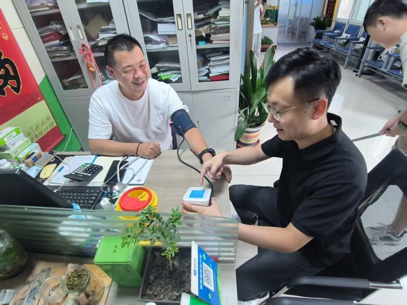 圖為實(shí)踐團(tuán)成員在為村民量血壓
