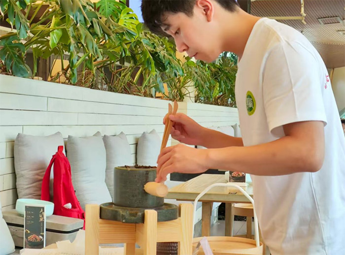 青年行動:讓傳統技藝“活”在當下 談及傳承初心,槐序老師動情回憶外曾祖父“吃茶”的場景:“茶葉碾成粉末,再用工具擊打出沫浡,一飲而盡,這種儀式藏著中國人對生活的認真。”她鼓勵學生以創新思維延續文脈:“傳承未必身著漢服仿古制,閑時為自己點一盞茶,便是對文化的致敬。”實踐隊隊長王同學感慨:“茶籠輕擊的瞬間,茶湯泛起云乳般的沫浡,讓人真切體會到‘慢下來’的力量。我們將探索點茶與現代茶飲的融合路徑,讓非遺真正走進青年生活。”