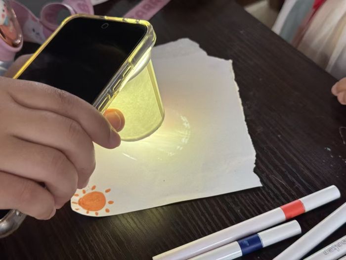 “光,灑在我臉上。”小吳老師的指尖輕觸光束,為孩子們點亮心里那道關于“光”的認知。“當丁達爾效應出現時,光便有了形狀”,這句藏著科學浪漫的話語,讓孩子們眼中的光斑有了詩意的注解。