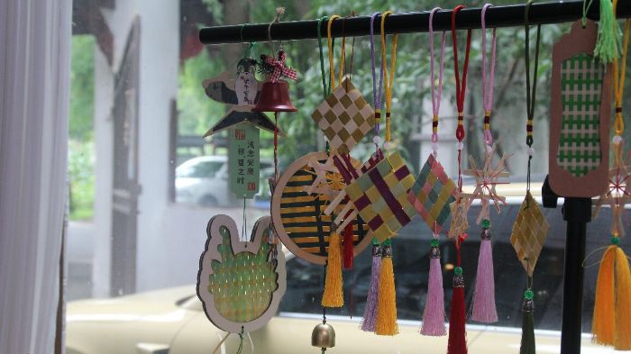 當談及青神竹編的實踐時,千雅老師曾多次表示既要“守正”,也要“創新”,既要傳承傳統技藝,同時也要大膽嘗試創新設計,讓古老的非遺文化能融入生活。在老師工作室中,有各種與現代家居、時尚飾品相結合的竹編文創,例如竹條編織的包包,融合扎染、苗銀等非遺元素的首飾(耳環,胸針),與和竹編結合香薰等,在墻上掛著的畫卷也與當下流行的元素相結合,展現的大熊貓憨態可掬。此刻,非遺文化好似摘下“高高在上”的面具,真正走入尋常家中。對于文創產品,老師說這就是一個不斷嘗試,不斷探索,不斷進行多技術融合創新的一個過程,傳統文化可以和當下流行趨勢相結合,非遺文創也可以走進生活,達到“實用,好看,實惠”的境地。