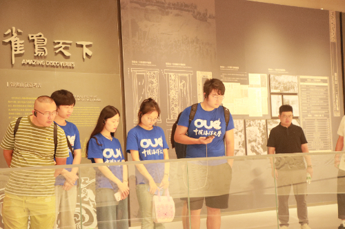 實(shí)踐隊(duì)員們參觀銀雀山漢墓竹簡(jiǎn)博物館(左)