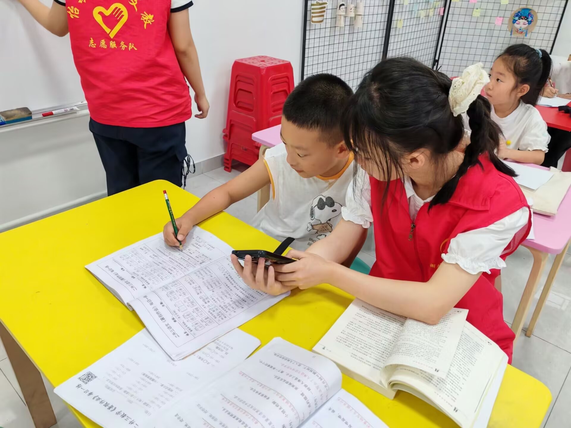 圖為志愿者耐心輔導(dǎo)社區(qū)兒童暑期作業(yè)。李翠姣 攝