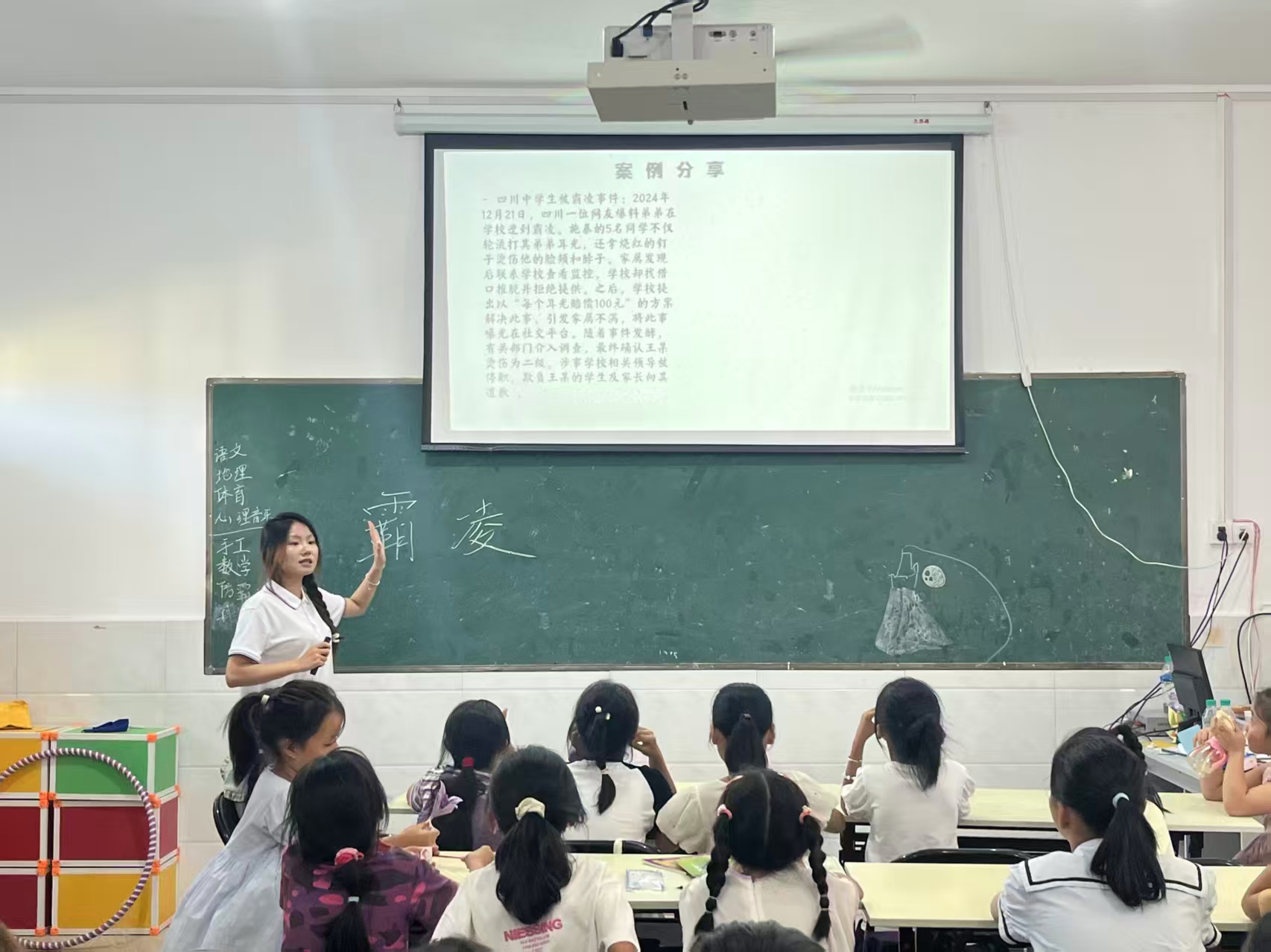 “看到別人被欺負,心里會不好受嗎?”實踐隊隊員特別關注旁觀者的心理狀態。運用自身專業知識,讓小朋友們知道,目睹霸凌卻沉默,可能會讓人感到自責、害怕,甚至慢慢變得冷漠。“在保證自己安全的前提下,我們可以做些什么呢?”實踐隊隊員引導孩子們:可以悄悄記下霸凌發生的時間、地點和經過,或者用手表、電話手表錄音,然后馬上告訴老師、爺爺奶奶,讓大人來幫忙解決。“告訴老師了,可是沒人管怎么辦?”有孩子小聲問道。志愿者耐心解答:如果向老師、家長反映后問題沒解決,別放棄。可以把具體情況寫下來,帶著被損壞的東西、看到事情的同學一起,找學校的校長或德育老師;也可以告訴村委會的叔叔阿姨,或者打110、12355未成年人保護熱線,一定會有人來幫助我們的。