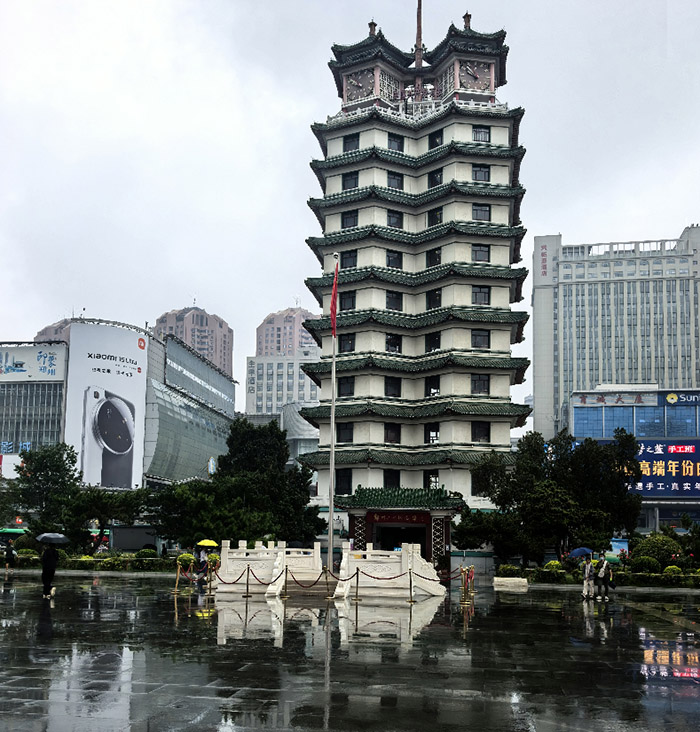 [圖注:矗立在鄭州二七廣場的二七紀念塔]