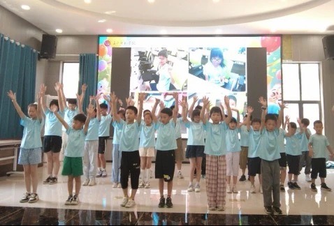 “當你的手拉著我的手,團結的力量彼此感受……”羲羲老師以本節課即將學習的歌曲《左手右手》開啟課堂。為降低學習難度,她將歌曲拆解成四小段,帶著小朋友們逐段學唱,孩子們有的緊盯歌詞模仿音調,有的在鼓勵中逐漸放開聲音,稚嫩的歌聲交織成溫暖的旋律,傳遞著團結的力量。在扎實的歌曲教學后,舞蹈學習順勢展開,原計劃分階段教學的動作,經一次視頻觀摩,便被孩子們牢記。當歡快的音樂在教室響起,整個空間瞬間變成充滿活力的舞臺——孩子們隨著節奏舒展雙臂,動作靈動而富有韻律,專注的神情與自信的笑容在每一個稚嫩的臉龐上綻放,構成一幅生動鮮活的成長畫卷。