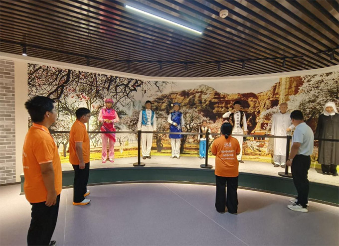 東鄉(xiāng)縣博物館:溯民族根脈,筑團結基石 踏入東鄉(xiāng)縣博物館,豐富的文物展品如同打開民族文化的“時光寶盒”。在歷史展廳,從舊石器時代的打制石器,到唐宋時期的陶瓷器具,見證著東鄉(xiāng)地區(qū)歷史的厚重與多元文化交融。民族文化展區(qū)里,東鄉(xiāng)族特色服飾吸人眼球,色彩艷麗的頭巾、繡工精美的坎肩,每一針線都承載著民族審美與傳承;傳統(tǒng)手工器具,如雕刻花紋的木質搟氈工具,展現著東鄉(xiāng)族同胞的技藝智慧。實踐團駐足參觀,在文物與歷史對話中,感悟民族文化多樣性與民族團結的深厚根基,深知守護民族文化就是守護團結奮進的精神源泉。