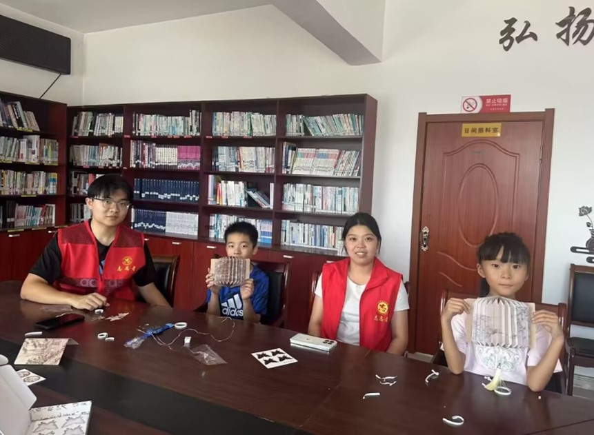 團隊成員與小朋友們一起進行制作“書燈”手工品 王俊淇 供圖