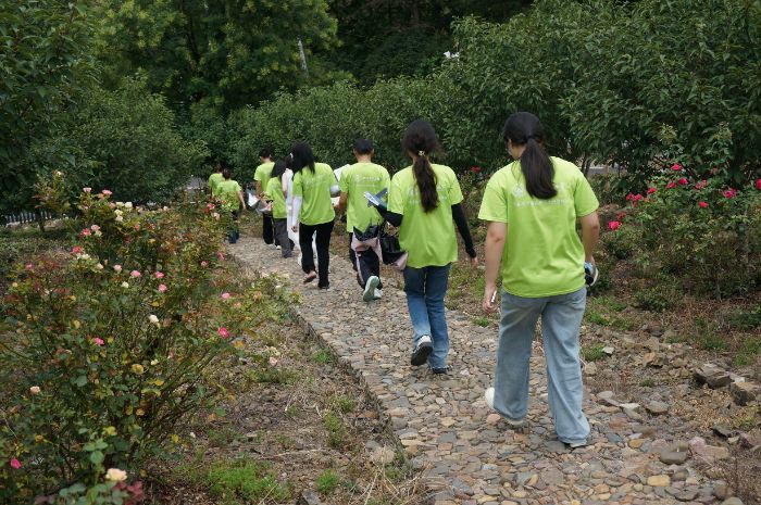 圖為實踐團在余主任的帶領下穿梭于萬畝茶山間。儲炙陽 供圖