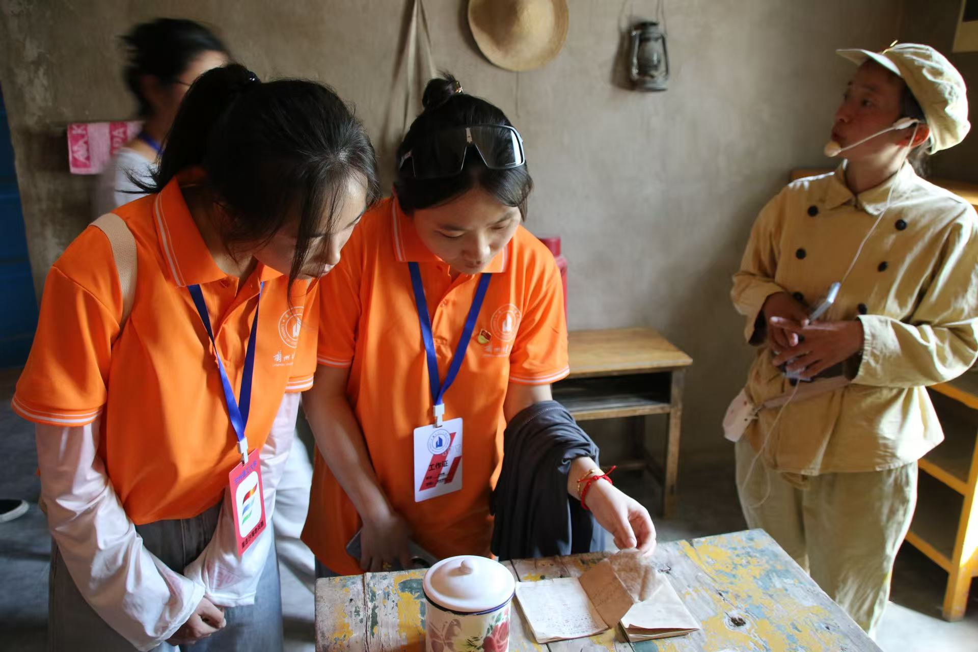 圖為實踐隊員翻讀十六團老一營的登記冊。高文玉 供圖