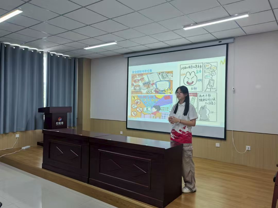 活動伊始,主講人唐思宇聚焦青少年日常生活中常見的網絡風險——從“中獎鏈接”“冒充親友求助”等典型詐騙手段,到暴力、低俗等不良信息的識別技巧,講解用真實案例結合動畫演示,將抽象的安全知識轉化為易懂的生活指南,讓大家清晰掌握“如何避坑”“怎樣自保”的實用方法。