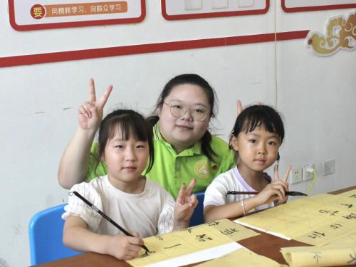 圖為志愿者開展書法小課堂。王亞璇供圖