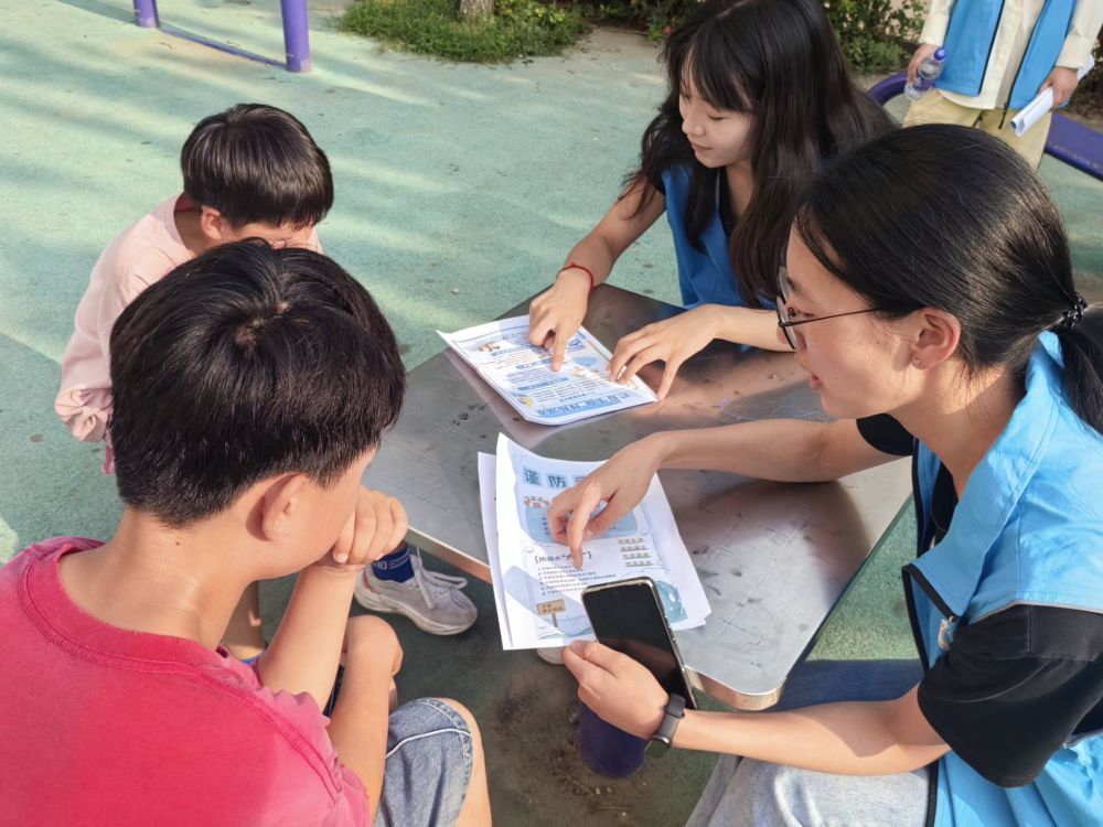 活動(dòng)伊始,團(tuán)隊(duì)成員們分組行動(dòng)。一組針對(duì)社區(qū)老人容易成為詐騙目標(biāo)的情況設(shè)立“銀齡守護(hù)站”,另一組針對(duì)暑期是兒童溺水事故的高發(fā)期設(shè)立“童心護(hù)航站”。