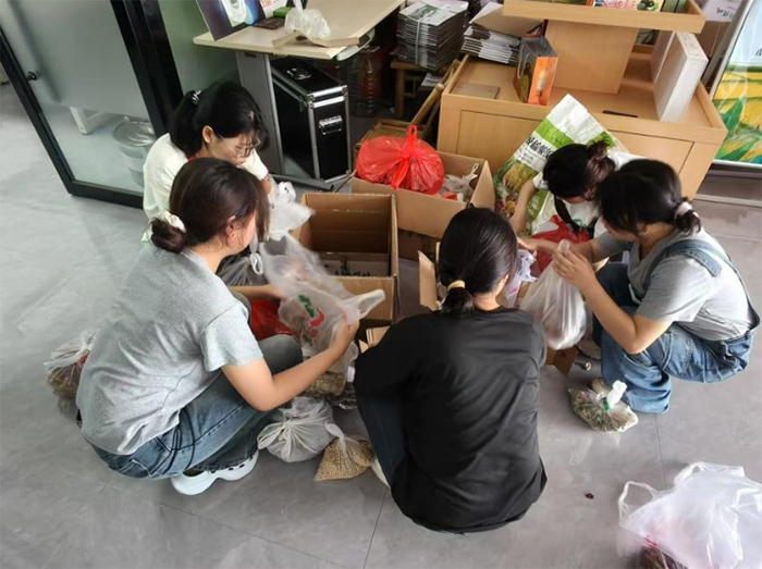 隨著直播時間的臨近,延大學子們迅速進入角色,化身“主播助理”與“助農主播”,全方位協助直播工作。有的同學細心地布置展示區域,調整燈光角度,確保每一件農產品都能清晰呈現最美的姿態;有的同學則對農產品進行仔細的整理分類,貼上對應的介紹標簽,方便展示和觀眾了解;還有的同學憑借活躍的思維,不斷給主播們提出富有創意的直播點子和互動建議,讓直播流程更加順暢有趣。