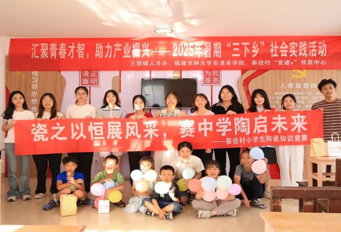 近日,福建農林大學赴泉州市德化縣瓷之以恒課題研究實踐隊一行走進德化蔡徑村,為當地小朋友們帶來了一場別開生面的“瓷都小探險家”瓷文化科普活動暨趣味活動。實踐隊通過生動講解、實物展示、互動游戲等方式,從高嶺土的特質到瓷器燒制的“四步魔法”,從“中國白”的獨特魅力到明代陶瓷大師何朝宗的傳奇故事,全方位揭開德化陶瓷的神秘面紗。在活動中,通過拆字游戲讓孩子們在拆解“瓷”“釉”等字的過程中加深對瓷文化的理解,陶瓷設計分享環節中激發了孩子們的創造力與想象力。實踐隊用青春力量助力德化瓷文化的傳承與發展,讓孩子們在歡聲笑語中感受本土文化的魅力,為瓷都的未來播下傳承的種子。