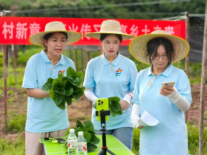 為深入貫徹鄉村振興戰略,推動農業產業轉型升級,7月15日18時30分,重慶外語外事學院“青山逐夢薪火傳習”溪望啟航鄉村振興實踐團,攜手巴夔戶牖集團在羊橋村巴夔戶牖旗下的綠色蔬菜園共同開展“綠色蔬菜巴夔農產甄選閣”主題直播活動。此次活動聚焦拓寬農產品銷售渠道、提升品牌影響力,積極探索“互聯網+現代農業”發展新模式,重慶大學建筑系返鄉創業畢業生、菜園負責人王云輝全程參與。