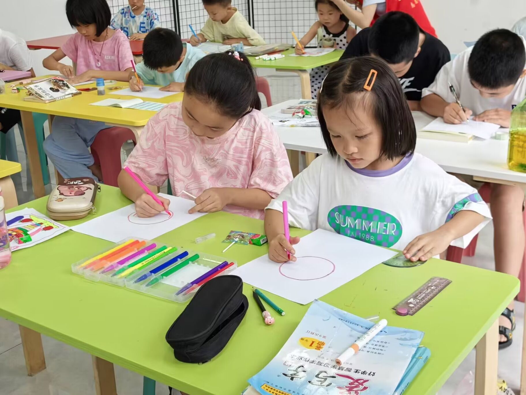 圖為孩子們開始自己嘗試繪畫徽章。安書鑫 供圖
