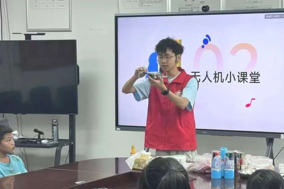 圖為實踐團成員開展無人機小課堂教學 劉靜 攝