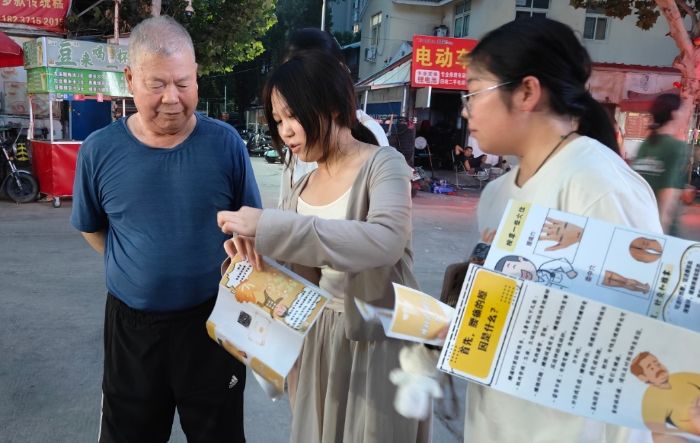 了解到部分居民對就醫診療存在“過度恐慌”的心理以及“隨意用藥”的行為。團隊重點聚焦“科學就醫、安全用藥”這一關鍵環節。“腰痛什么時候必須看醫生?”隊員王同學清晰列出幾條“紅色警報”:疼痛持續超兩周未緩解、進行性加重、夜間痛醒、伴隨腿麻無力或大小便異常。針對“進了醫院怎么辦?”的迷茫,團隊模擬了規范診療流程:從醫生細致的問診查體,到可能需要的影像學檢查(如X光、CT),再到明確病因。居民劉阿姨聽后感慨:“這下清楚怎么辦了!”針對安全用藥,團隊成員向居民展示了一些濫用藥物導致不良后果的真實案例。團隊反復強調嚴格遵醫囑安全用藥,嚴禁自行增減劑量或長期濫用止痛藥。
