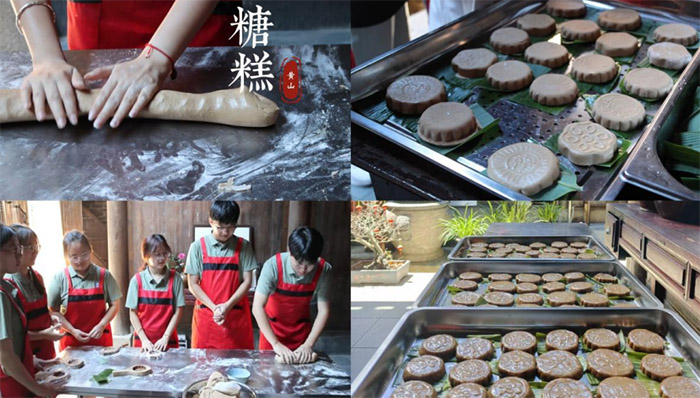 在村文化站,團員們分組調研徽州器物、節慶習俗,梳理村莊發展脈絡并撰寫文化調研報告。實踐團還親手制作徽州糖糕,在揉面、塑形、蒸制的過程中,不僅了解到糖糕作為節慶美食承載的“甜蜜團圓”寓意,更從親手制作的香甜中,初次觸摸到非遺文化的煙火氣。