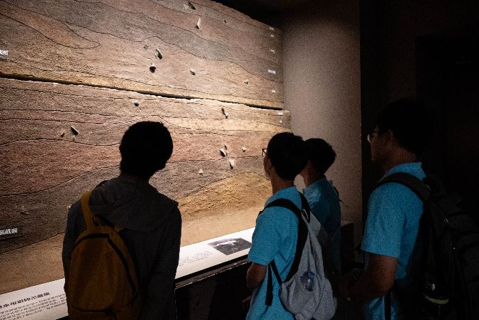 殷墟遺址的黃土下,埋藏著3000多年前殷商文明的密碼。在講解員的引導下,實踐團成員首先走進車馬坑遺址展廳。玻璃展柜內,幾具保存完好的車馬遺骸靜靜陳列,木質車廂的紋路仍清晰可辨,車輪的輻條整齊排列,仿佛能讓人聽見當年戰車馳騁的聲響。“這是殷墟出土的晚商馬車,距今約3200年,你看車軸上的青銅飾件,不僅美觀,還能減少摩擦——古人的智慧藏在每一個細節里。”講解員指著展品介紹。實踐團成員、遙感科學與技術專業學生焦子鉑俯身為展品拍照,鏡頭里,甲骨文中“車”字的字形與眼前的車馬遺骸驚人相似,“原來文字真的是歷史的鏡像,課本里的甲骨文突然‘活’了過來。”實踐團成員駐足于地層展柜前,展柜以立體剖面形式還原了遺址的土層結構,從上至下分層標注著現代耕土層、明清文化層、漢唐文化層與商代文化層,不同年代的土壤以棕黃、灰褐等色彩區分,每層中還嵌著對應時期的陶片、獸骨碎片等遺物。