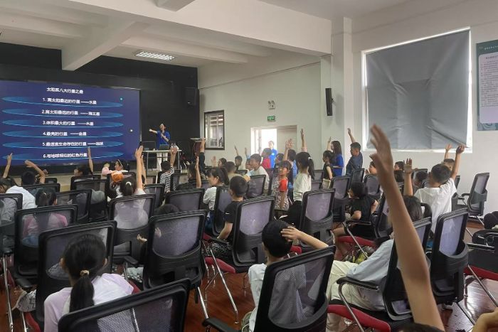 在麗江市古城區(qū)青少年校外活動中心,團隊與成都理工大學地球與行星科學學院“繁星守望”團隊合作開展了“麗江星語·少年尋夢”科普活動。團隊成員通過四場不同方面的天文科普,分別涉及了宇宙起源、太陽系、地球、月球,為50余名城區(qū)青少年(包含少數(shù)民族學生)帶來了一場別開生面的天文知識講座。