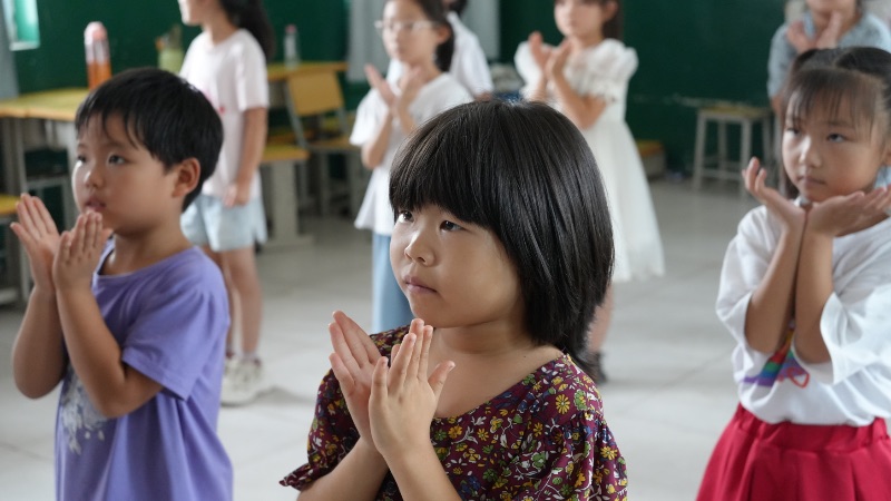 “冀翼童心”社會實踐團隊依托成員專業特長,為留守兒童開展系列沉浸式、互動式小課堂。播音課上,團隊成員帶領孩子練口部操、進行模擬主持,幫助孩子改善發音、提升表達自信;手工實踐注重操作能力與創造性思維培養,以手繪扇子為主題,讓孩子在涂色創作中釋放創意;舞蹈課上,成員耐心拆解動作,指導孩子學習舞蹈,有效提升了學生的肢體協調能力與藝術感知素養;影視鑒賞環節聚焦價值觀與審美教育,通過具有積極意義的影片,幫助學生理解敘事藝術中所蘊含的情感結構與人文精神,切實將語言表達、藝術感知、創意實踐融入課堂。
