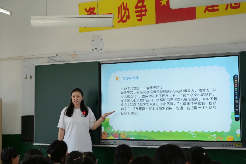 團隊精心策劃組織了“書香伴成長”讀書分享活動;顒又,成員們為每位小朋友贈送了精心挑選的繪本讀物,并結合自身成長經歷分享讀書心得。成員們與孩子們圍坐在一起,圍繞繪本內容展開親切交流,通過生動講述和互動討論,讓孩子們感受到閱讀的樂趣。活動現場氣氛溫馨融洽,成員們用真誠的分享搭建起情感聯結的橋梁,在傳遞知識的同時給予溫暖的陪伴,讓留守兒童在閱讀中獲得知識與情感的雙重滋養。夢想班會環節,團隊成員主動詢問每個孩子的夢想,認真傾聽他們對未來的憧憬。隨后,借助AI技術為孩子們生成專屬職業證件照,當孩子們看到印有自己形象的“職業照片”時,眼中滿是驚喜,進一步堅定了對夢想的期待,也在心中埋下努力成長的種子。通過理想對話、情感表達以及“小紅花”表彰等形式,使活動有效拓展了價值觀引領與精神塑造的實踐路徑,助力留守兒童在思想啟迪中樹立信念、在交流共情中強化認同。