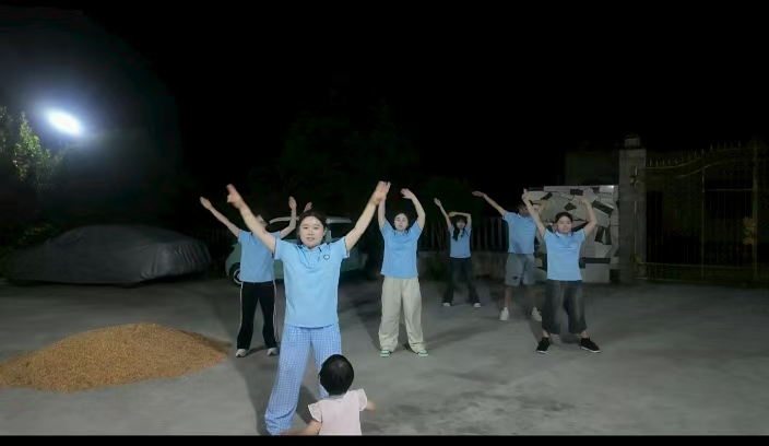 教學(xué)結(jié)束后,廣場變身歡樂海洋。隨著手機播放的《最炫民族風(fēng)》響起,隊員與村民攜手共舞,苗家蘆笙舞步與流行舞曲奇妙交融。跳繩比賽中,55歲的楊大爺敏捷穿梭,銀飾叮當(dāng)聲與歡笑聲編織成夏夜交響。當(dāng)《我和我的祖國》歌聲掠過梯田,遠(yuǎn)處山巒在月光下勾勒出溫柔的輪廓。
