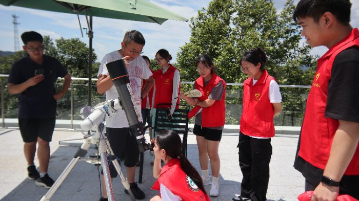 當傳統(tǒng)茶鄉(xiāng)邂逅現(xiàn)代天文,會碰撞出怎樣的火花?7月25日,中南林業(yè)科技大學生命科學與技術學院“湘韻研行·金井振興”發(fā)展成就觀察實踐團10名學生,前往長沙縣金井鎮(zhèn)金龍村“茶觀天象”金井天文臺,開展暑期“三下鄉(xiāng)”社會實踐,深入調研“天文科普+茶旅融合”的創(chuàng)新模式,解碼鄉(xiāng)村振興的“星空答案”。