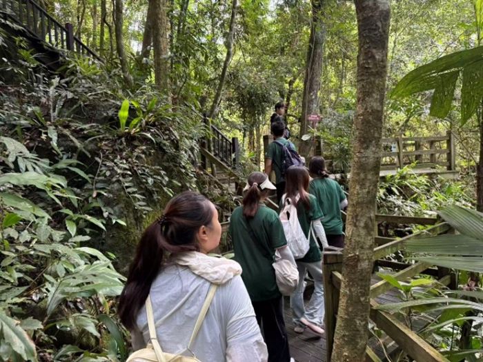 圖為實(shí)踐團(tuán)在五指山熱帶雨林公園實(shí)地考察。 趙家涵 攝