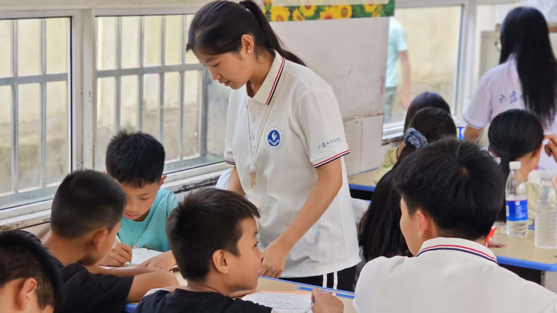 圖為最后一堂課,志愿者在教室里輔導同學完成暑假作業,助力他們鞏固知識。通訊員汪永站 攝