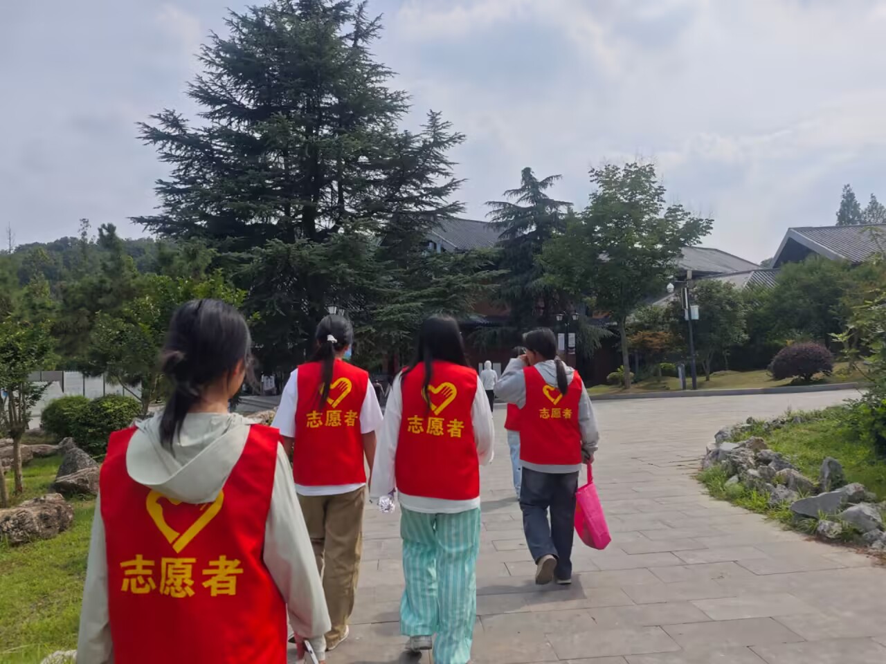 實(shí)踐首日,小分隊(duì)成員身著志愿者紅馬甲,踏入瑯琊山。這里不僅有歐陽修筆下“蔚然而深秀”的自然風(fēng)光,更留存著醉翁亭、瑯琊寺等文化古跡。沿石板路前行,成員們觀察古建筑的飛檐斗拱,聆聽導(dǎo)游講述《醉翁亭記》背后的典故。