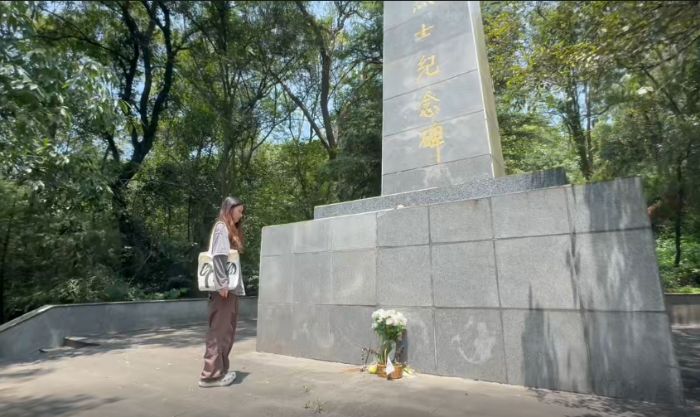 志愿團(tuán)隊(duì)成員懷著崇敬之心來到紀(jì)念碑前,手捧鮮花緩緩放下,在莊嚴(yán)肅穆的氛圍中低頭默哀,以此表達(dá)對無名烈士的深切緬懷。大家仔細(xì)拍攝紀(jì)念墻上的銘文,試圖從這些簡略的文字中,捕捉烈士們曾經(jīng)鮮活的生命軌跡。