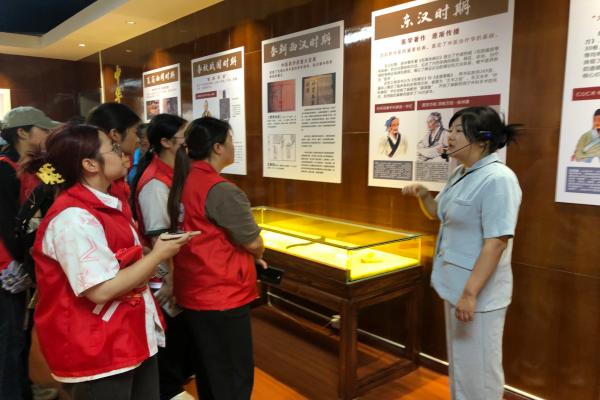 (圖為安徽墨藥制藥有限公司的講解員向團隊成員講解中藥發展史。徐涵 供圖)
