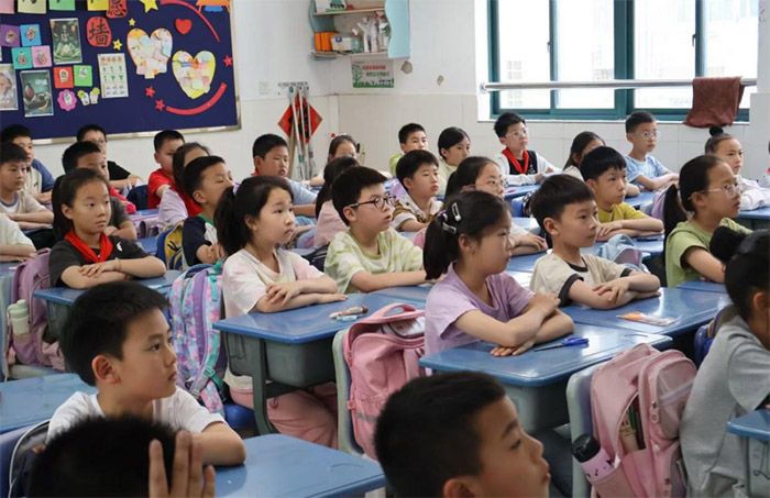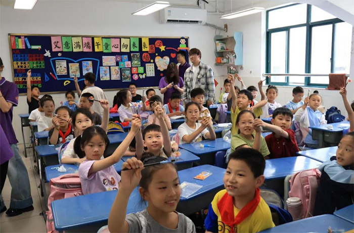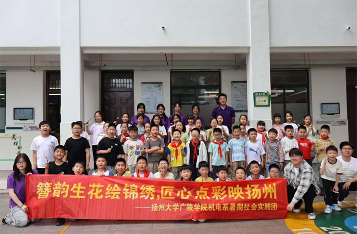 (圖為六月五日,“簪花生韻繪錦繡,匠心獨彩映揚州”暑期三下鄉實踐團在揚州汶河小學實踐。周瑛琦攝)