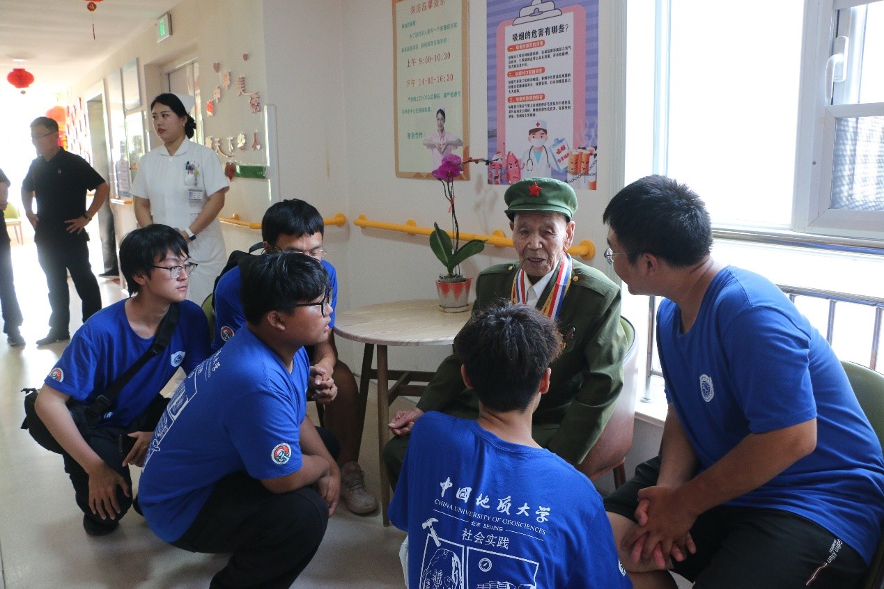(圖為實踐團成員與朱有芹老人交流。 王奕彭 劉一默 攝)