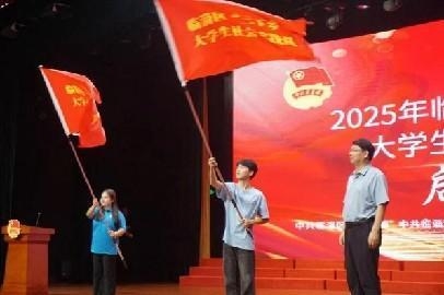 實踐團受邀參加臨淄區“齊雁歸巢”大學生暑期社會實踐活動啟動儀式并作為“三下鄉”暑期社會實踐臨淄行的團隊代表接受授旗。