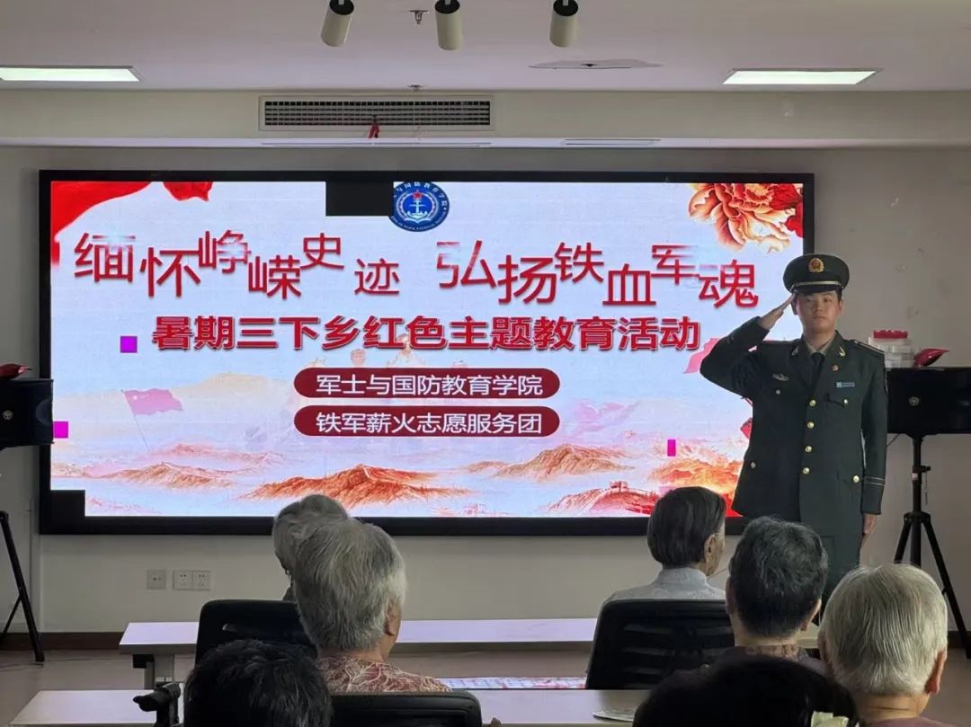 黨的二十大報告明確指出,要弘揚以偉大建黨精神為源頭的中國共產黨人精神譜系,用好紅色資源,深入開展社會主義核心價值觀宣傳教育。在此指引下,軍士與國防教育學院(以下簡稱軍士學院)“鐵軍薪火”戎耀深藍志愿服務隊肩負著傳承紅色文化、賡續精神血脈的歷史使命,在暑期開展“緬懷崢嶸史跡,弘揚鐵血軍魂”主題志愿服務活動。
