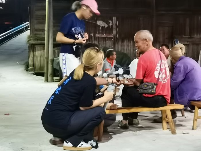 實踐隊用鏡頭對準侗族生活的細節,記錄了拱橋下的群鴨、篝火旁合唱的歌隊、鼓樓下飛針走線的繡娘和廊下乘涼的阿婆這些獨具特色的侗族大群像以及實踐隊員受到村民的熱情招待和學習民俗文化時“抓耳撓腮”的可愛模樣。這部充滿真情實感的紀錄片,將成為侗族文化傳播最溫情的廣告片,也是地捫侗寨一份珍貴的數字檔案。