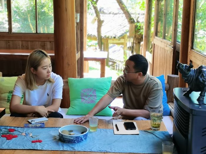▲圖為實踐隊隊長訪談地捫村侗族大歌非遺傳承人 楊璦聰攝