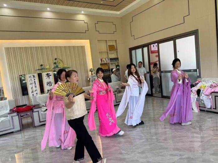 實(shí)踐隊(duì)隊(duì)員在觀看完秀蘭班的表演后,在青陽(yáng)腔傳承人的帶領(lǐng)下,換上精致的表演服裝,開(kāi)啟學(xué)藝之旅。傳承人從基本的唱腔韻味教起,一字一腔糾正發(fā)音;再到臺(tái)步、手勢(shì),細(xì)致指導(dǎo)動(dòng)作規(guī)范。隊(duì)員們親身感受著青陽(yáng)腔 “滾唱滾白”“一唱眾和” 的獨(dú)特魅力,在一招一式、一吟一唱中,觸摸到傳統(tǒng)戲曲藝術(shù)的深厚底蘊(yùn),體會(huì)到非遺傳承背后的堅(jiān)守與溫度。